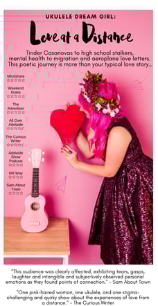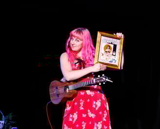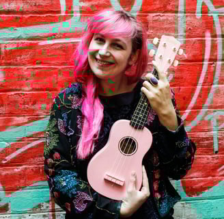 Her stage persona, the Ukulele Dream Girl, first took to the stage in 2019 captivating audiences with her unique blend of music, poetry, and storytelling.