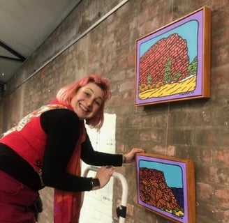 Through her work at Life Without Barriers, with Ink Pot Arts and freelance work she has presented creative activities, workshops, exhibitions, variety shows at countless events and festivals in the past 15 years with a focus on bringing people together to try something new. These include exhibitions and installations featuring works by people with lived experience of mental health challenges and out of home care experiences during the SALA and Adelaide Fringe Festivals alongside coordinating installations and roving entertainment for the Groovin the Moo Festival.